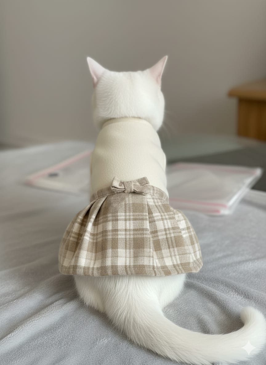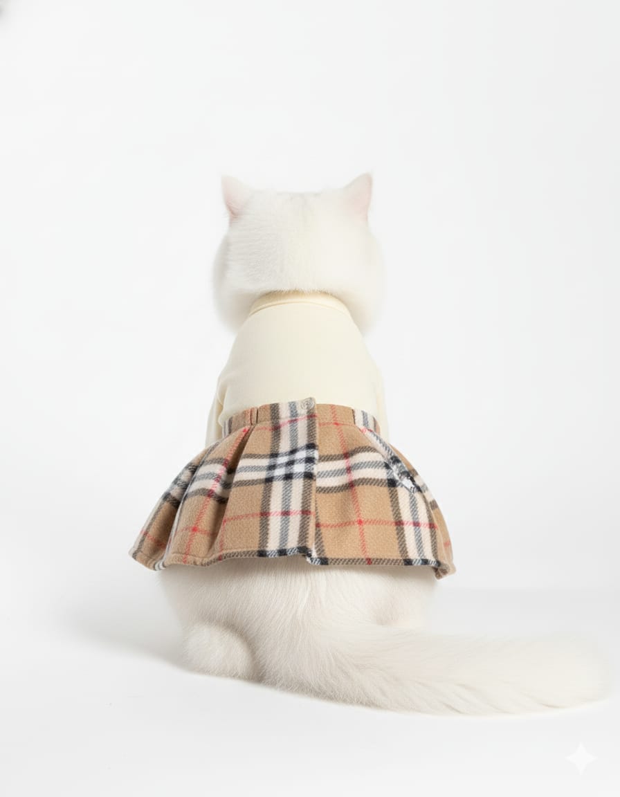 Elevate your feline's wardrobe with our Luxury 'Bow-Back' Plaid Cat Dress, the ultimate statement piece for sophisticated pets. This outfit combines timeless elegance with irresistibly cute detail, featuring a charming pleated tartan-style skirt and an adorable structured bow perfectly centered at the waist.