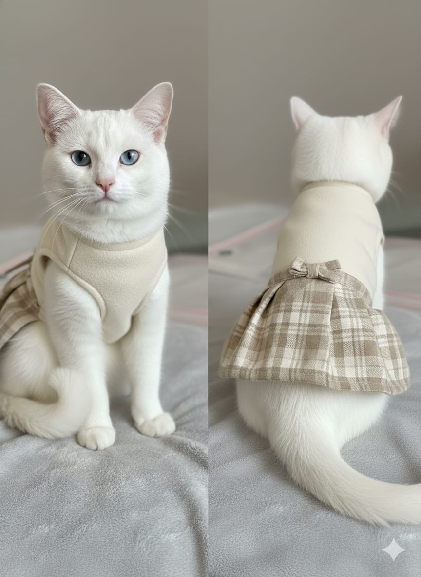 πŸŽ€ Luxury 'Bow-Back' Plaid Cat Dress | Preppy, Pleated Kitten Skirt & Vest | Adorable Pet Fashion S-M-L