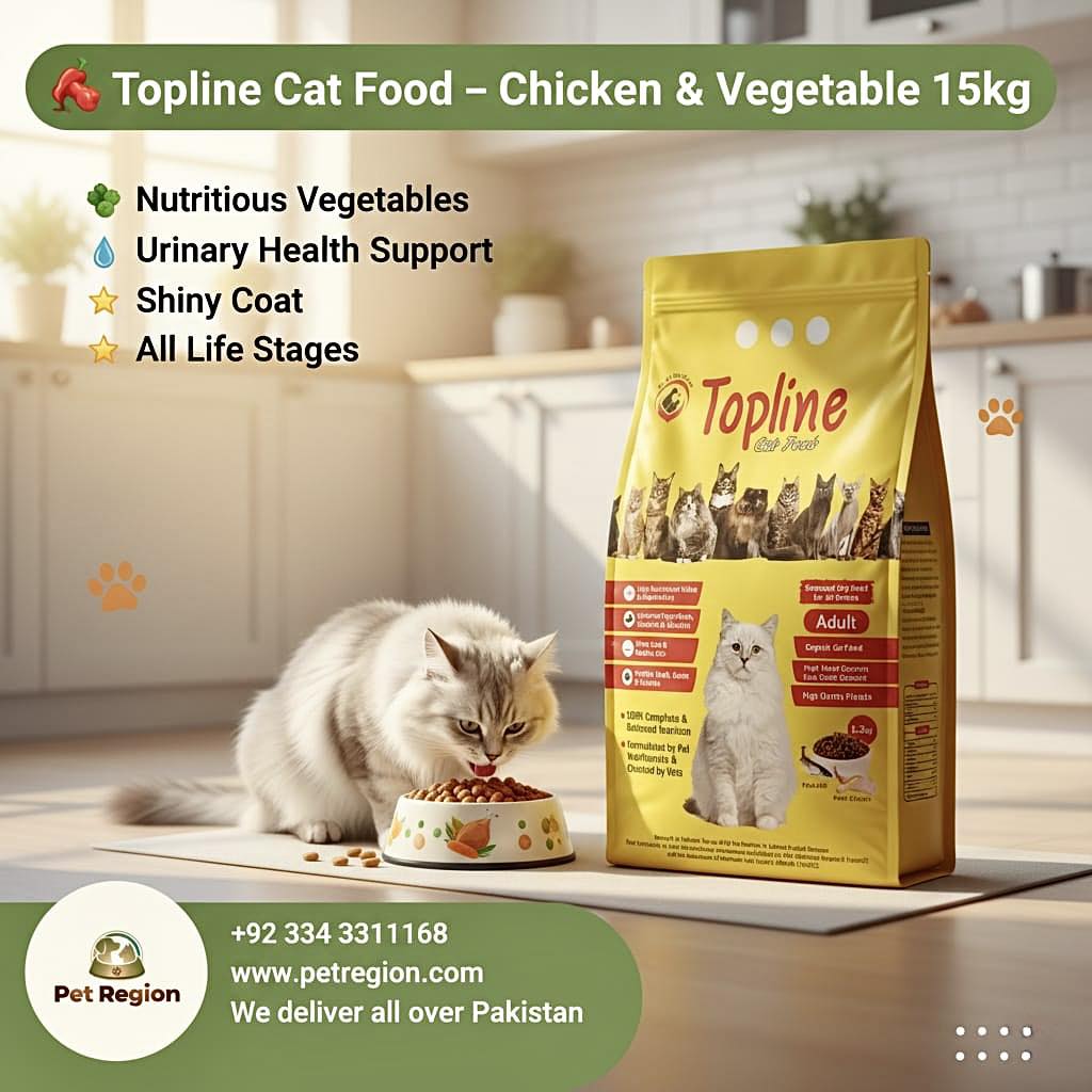 🐱 Topline Cat Food – Chicken & Vegetable (15kg) | Complete Nutrition for All Cats
