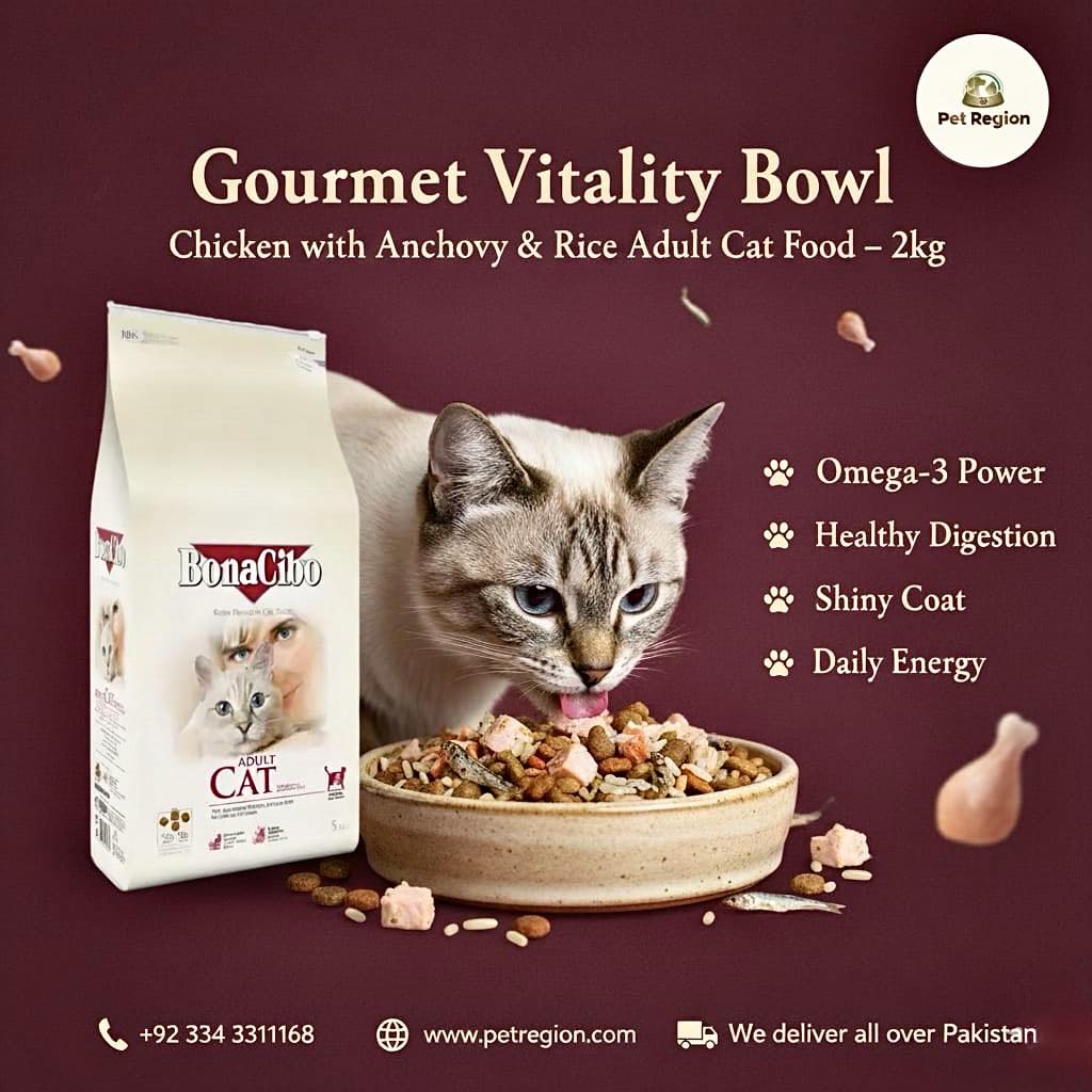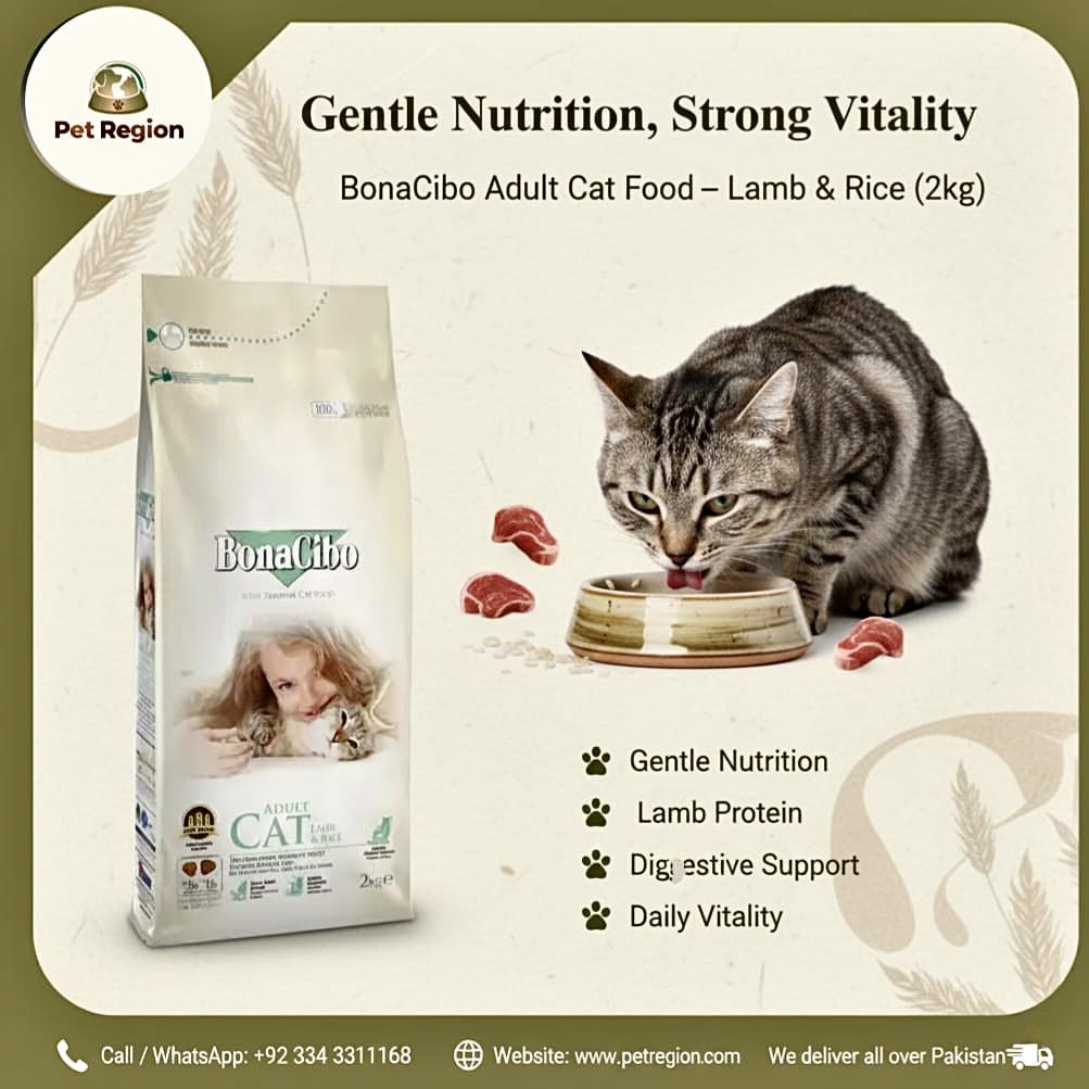 BonaCibo Adult Cat Food 2kg – Premium Lamb & Rice, Chicken & Anchovy for Healthy Cats | Pet Region Pakistan