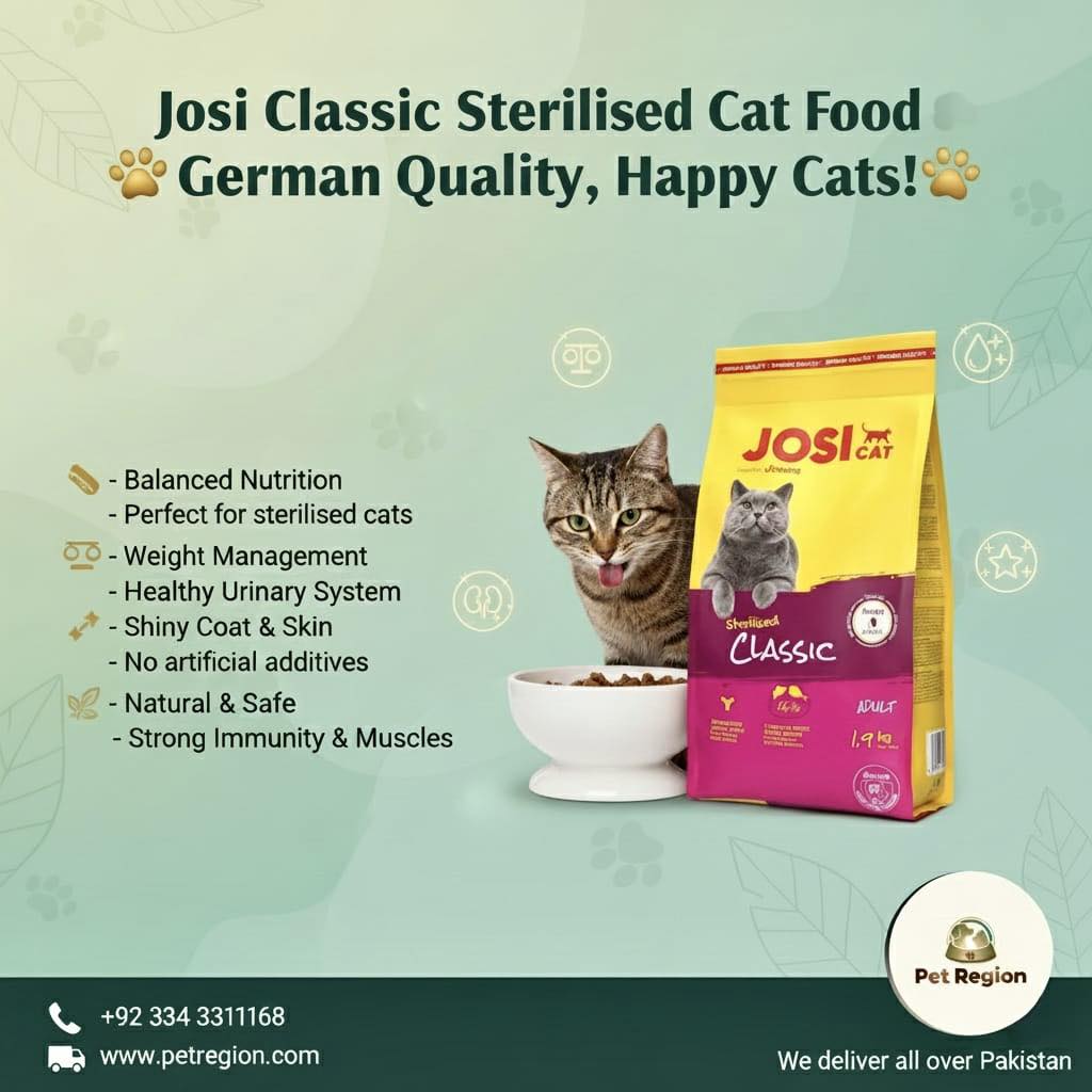 Give your feline friend the perfect balance of health, taste, and vitality with Josi Classic Sterilised Cat Food — a premium German-made formula tailored to meet the unique needs of sterilised cats. Specially developed to maintain an ideal weight, support urinary health, and boost overall wellness, this food ensures your cat stays active, healthy, and happy every day.