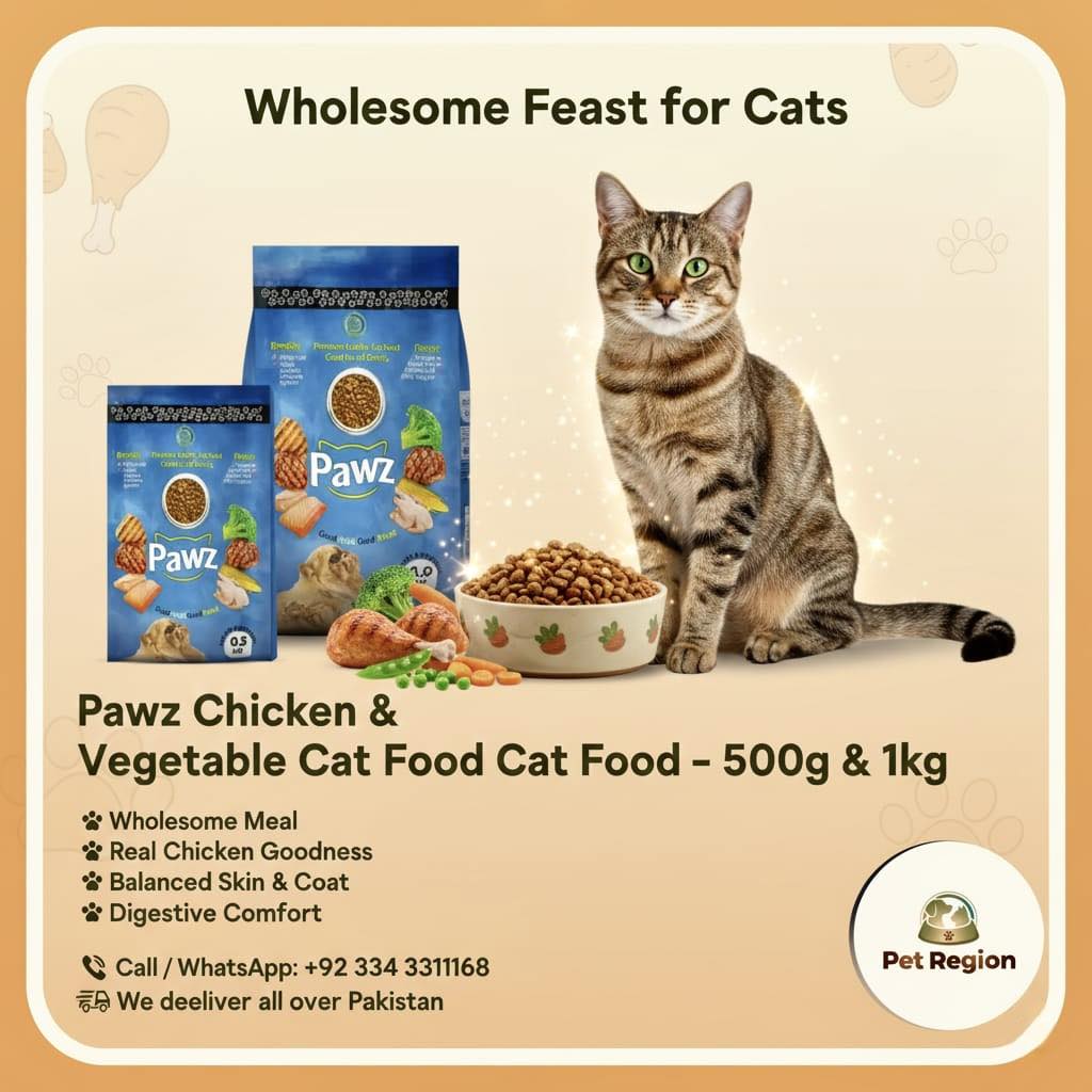 Wholesome Pawz Cat Food – Chicken & Veg, 500g / 1kg | Nutritious, Delicious & Healthy Meals for Adult Cats | Pet Region Pakistan