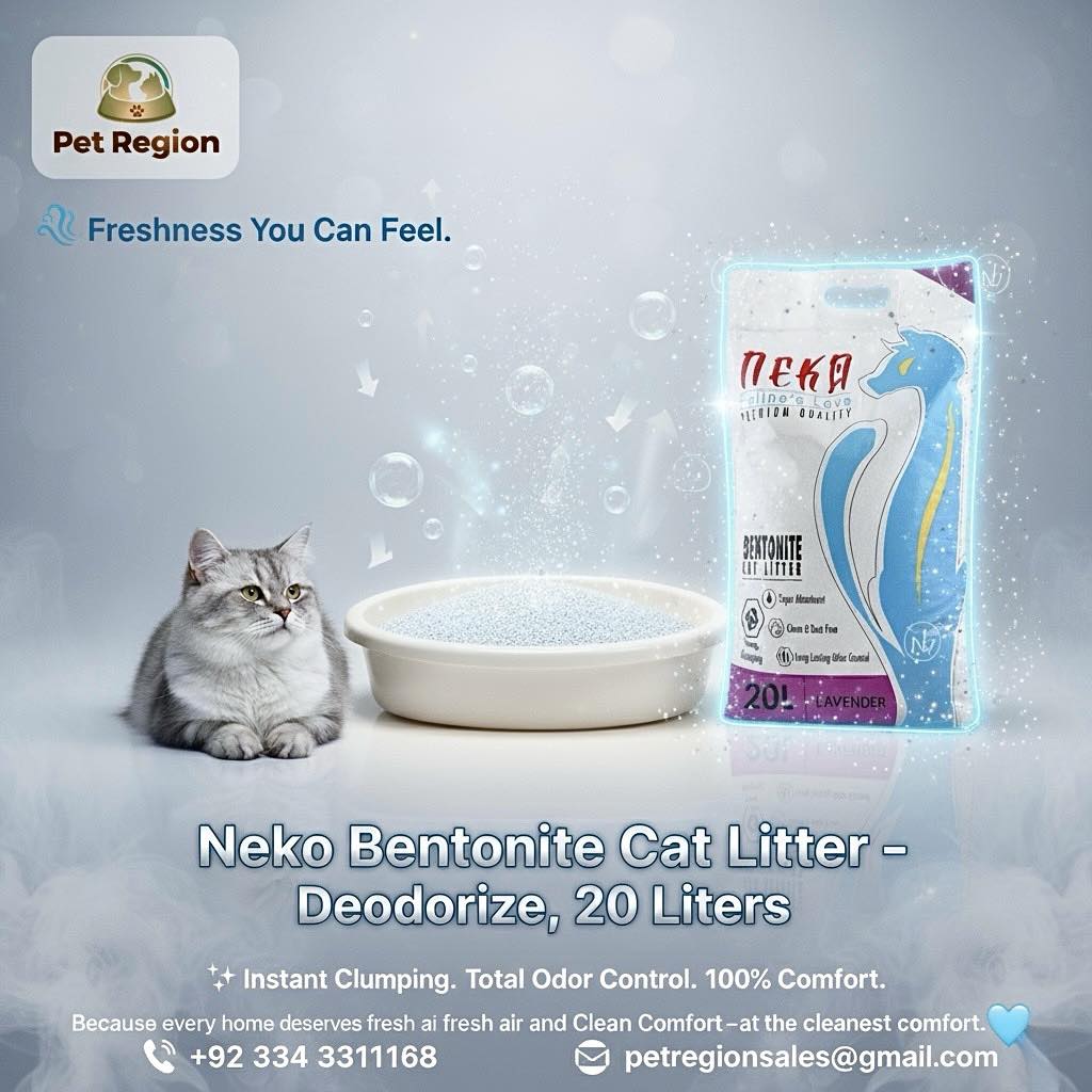 Maintain a clean, fresh, and hygienic litter box for your cat with Neko Bentonite Cat Litter. This premium 20-liter cat litter is designed for fast clumping, effective deodorization, and minimal mess, ensuring both your home and your feline friend stay happy.
