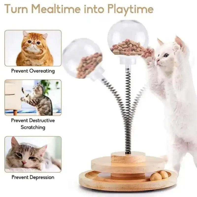 Cat Treat Dispenser Toy – Interactive Cat Feeder, Ball Track & Spring-Loaded Fun | Pet Region