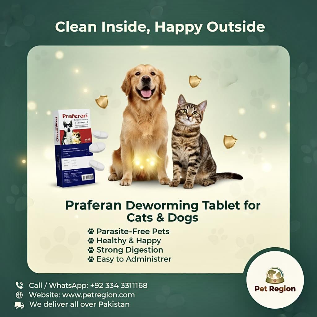 Keep your pets healthy, happy, and parasite-free with Praferan Deworming Tablet for Cats and Dogs, a scientifically formulated solution designed for complete internal parasite control. Regular deworming is essential to your pet’s wellness—and Praferan makes it safe, effective, and easy.