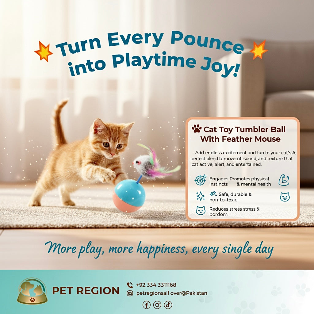 Keep your feline friend happy, healthy, and endlessly entertained with the Cat Toy Tumbler Ball with Feather Mouse — a fun, interactive toy that stimulates your cat’s natural hunting instincts while promoting exercise and play.