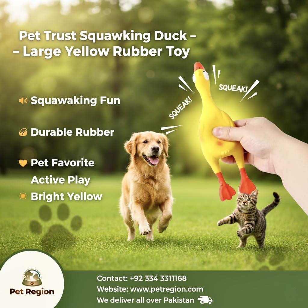 Bring laughter and excitement to your pet’s playtime with the Pet Trust Squawking Duck Rubber Squeeze Toy — the perfect mix of sound, movement, and fun! Designed for both cats and dogs, this bright yellow duck makes a realistic squawking sound when squeezed, instantly grabbing your pet’s attention and turning ordinary play into hours of entertainment.