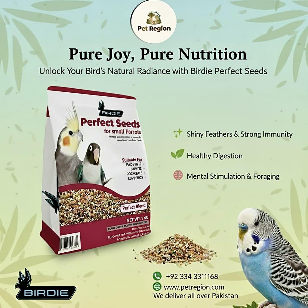 Birdie Perfect Seeds for Small Parrots and Small Birds provide complete daily nutrition in every bite. Specially formulated to meet the unique dietary needs of smaller bird species, this premium seed mix offers a natural and balanced blend that keeps your feathered companions active, healthy, and full of life.