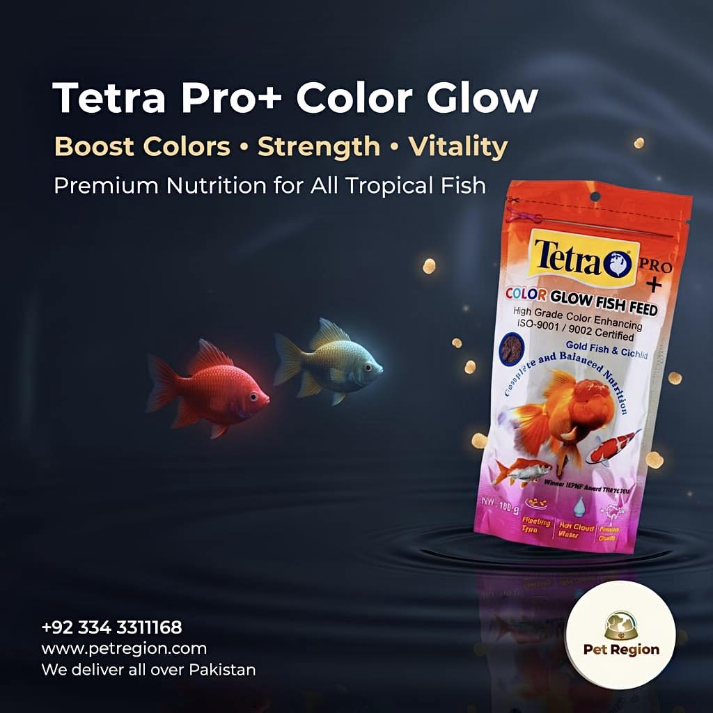 Enhance the beauty of your aquarium with Tetra Pro+ Color Glow Fish Feed 100gm, now available at Pet Region at the best price in Pakistan. This advanced tropical fish food is specially formulated to boost natural colors, support strong immunity, and promote healthy growth in ornamental fish.